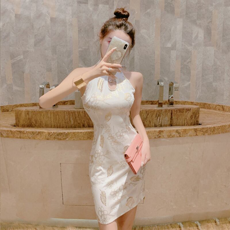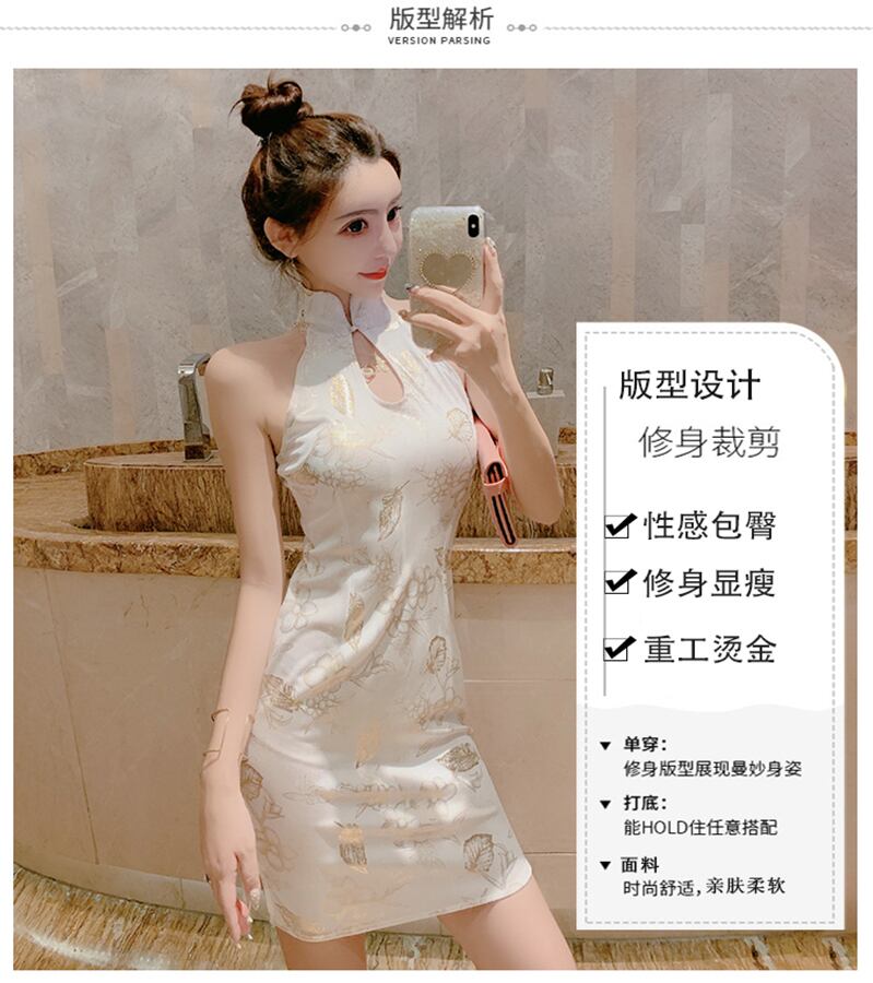 ナイトクラブバーレディースファッションスタンピングセクシーな中空吊り首タイトフィットヒップショートチャイナドレス改良版ドレス micat48048400057