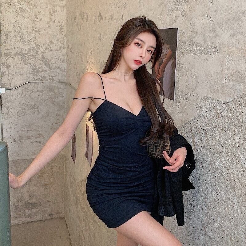 ナイトクラブレディースナイトセクシーなローカットディープVネックタイトフィットお尻黒ボトミングスリングドレス micat11784619188