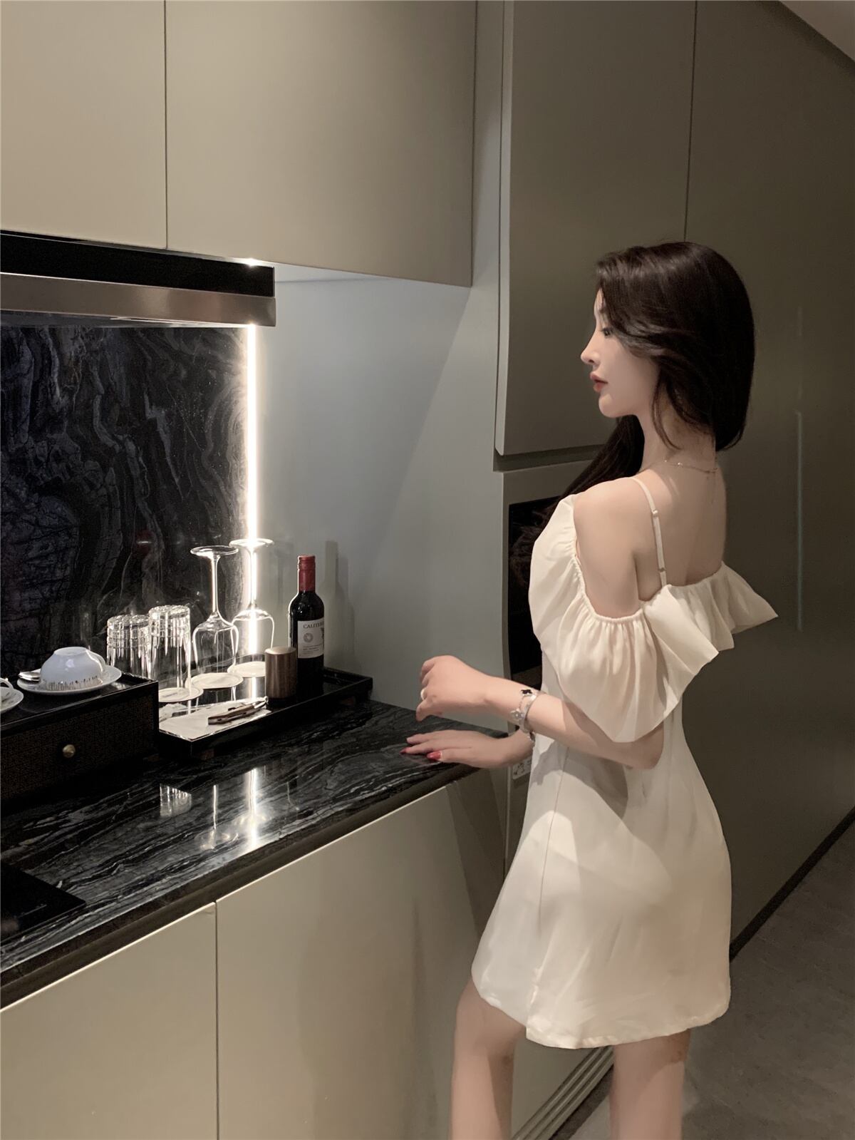 白いサスペンダースカート女性の夏フレンチスタイルのアウターウェア非常に妖精の気質セクシーなワンショルダースリムスリムドレス micat49731185083