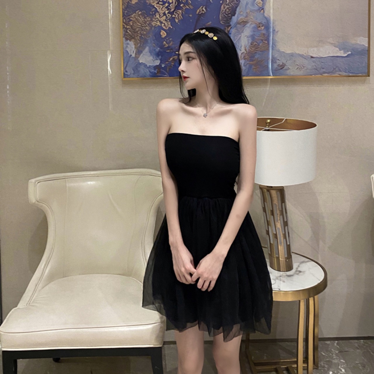 ナイトクラブの女性のイブニングドレスショートセクシーなワンショルダースーパーフェアリーネットガーゼ長袖ふくらんでいるチューブトップドレス micat36213067396