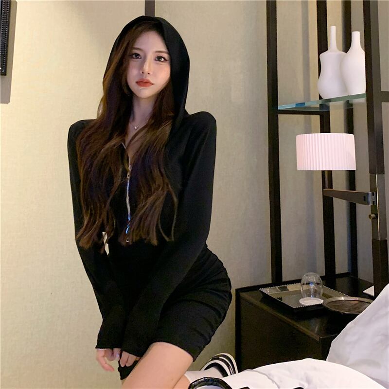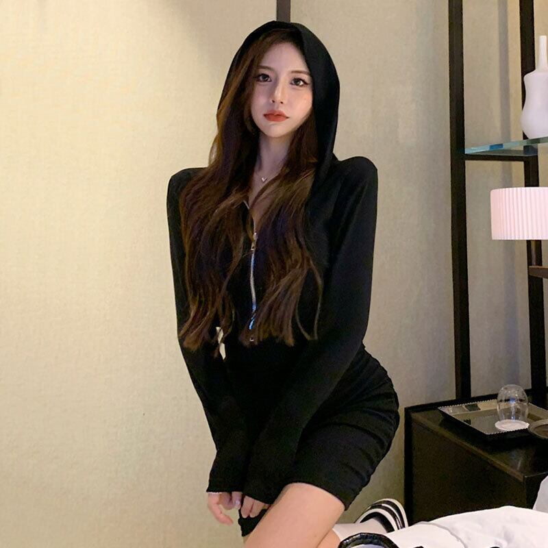スーツレディース初秋の気質フード付きカーディガンスモールコート+セクシーなローカットディープVネックサスペンダースカートツーピーススーツ micat93829694824