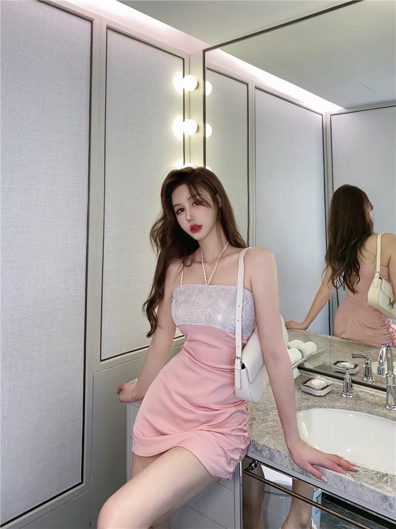 ナイトクラブの女性のナイトショーきらびやかなスパンコールがセクシーなワンショルダーショートバッグヒップチューブトップストラップドレスをステッチ micat22096775385