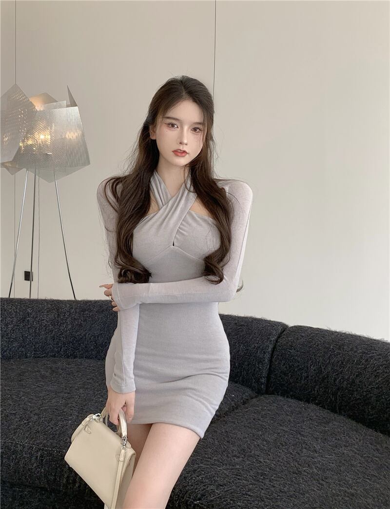 2021年秋新しい女性ネットレッドシックなデザインセンスセクシーな中空インナーベースホルターネックドレス micat7698682014
