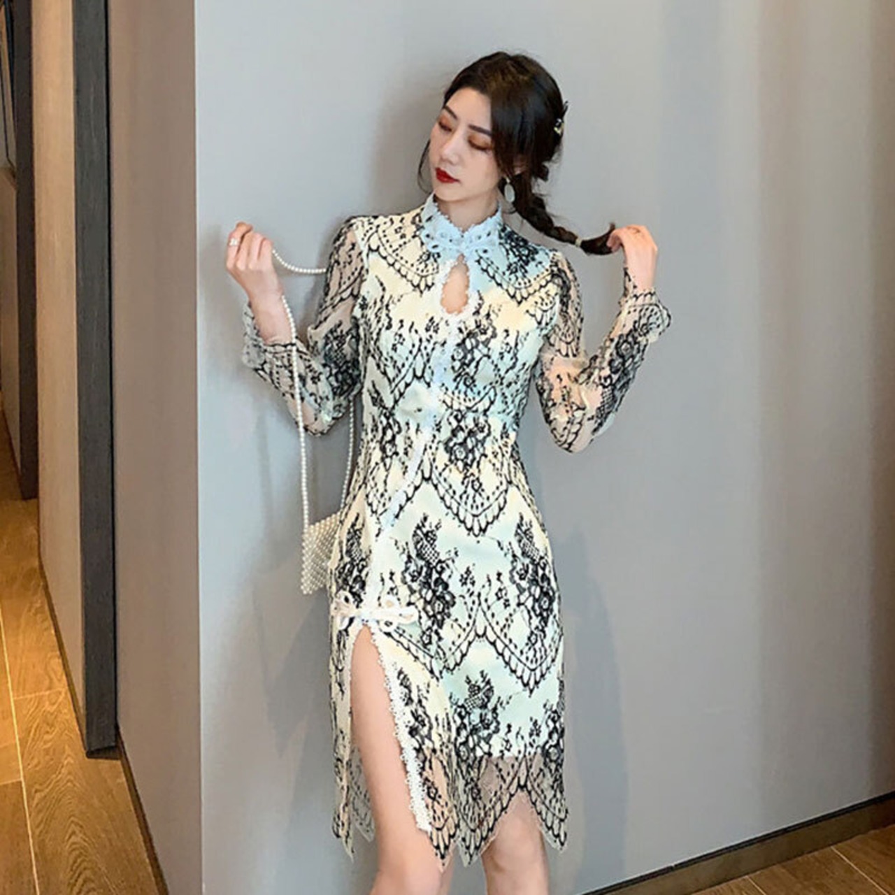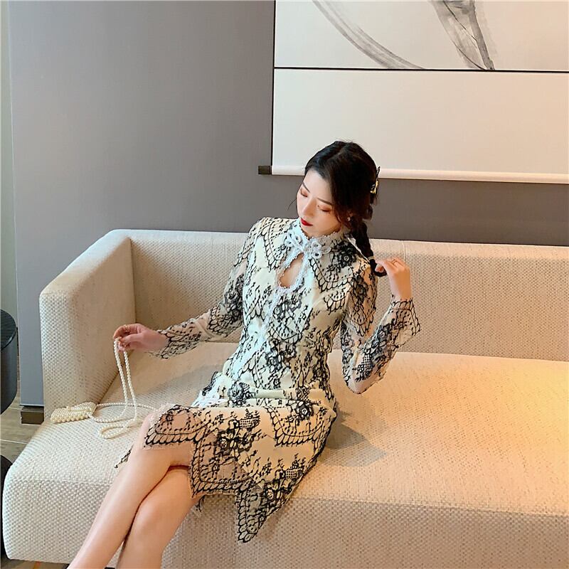2021年秋新しい女性のハイエンド気質の若いファッションまつげレースチャイナドレス改良版ドレス micat52162591093