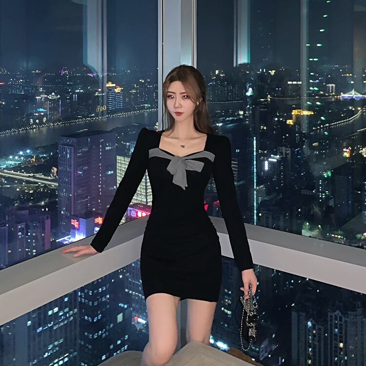 初秋の服2021新しい女性のシックなフレンチスクエアカラー気質セクシーなスリムバッグヒップインナーボトミングドレス micat53502834708