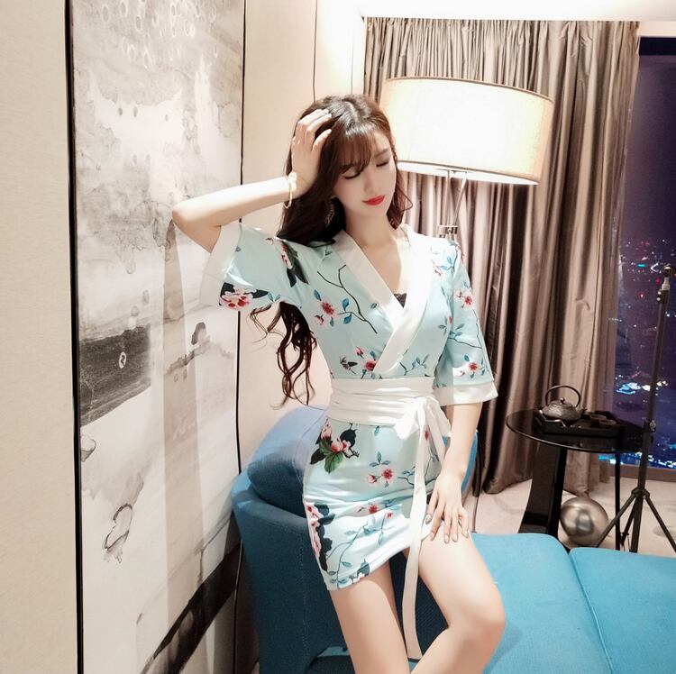 生放送アンカー服夜作業服セクシーVネックウエストスリミングショート臀部着物ドレス改良 micat67947360086
