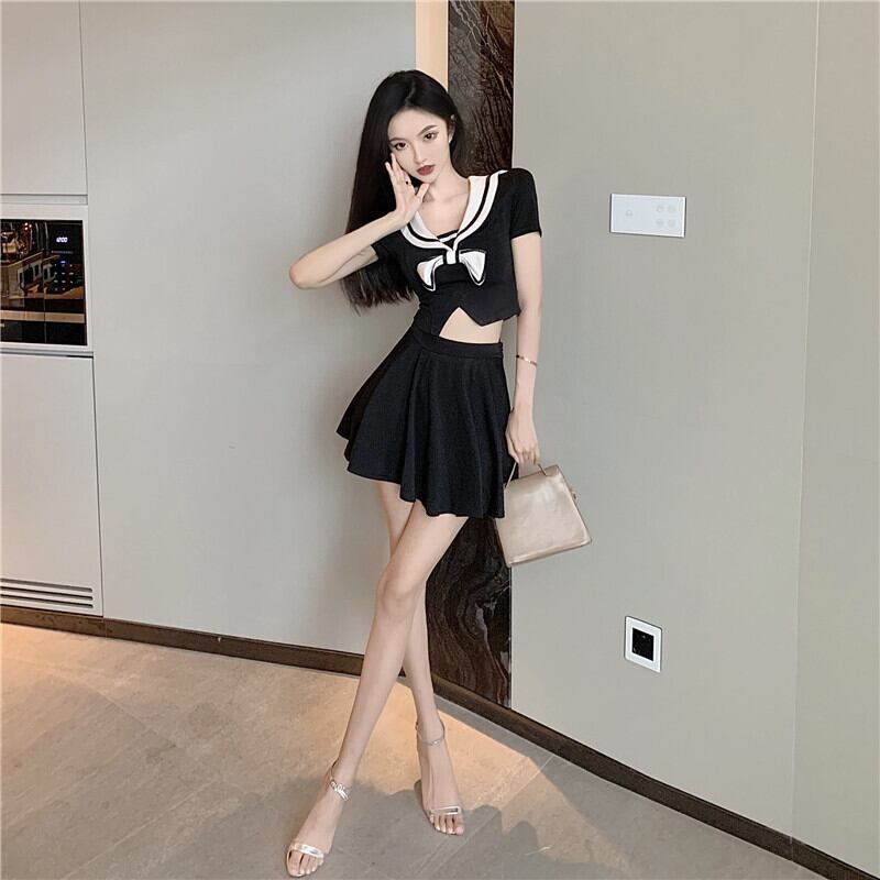 jkユニムナイトクラブ技術者作業服スーツセクシーショートネイビーカラートッププリーツショートスカートツーピーススーツ micat30528956804