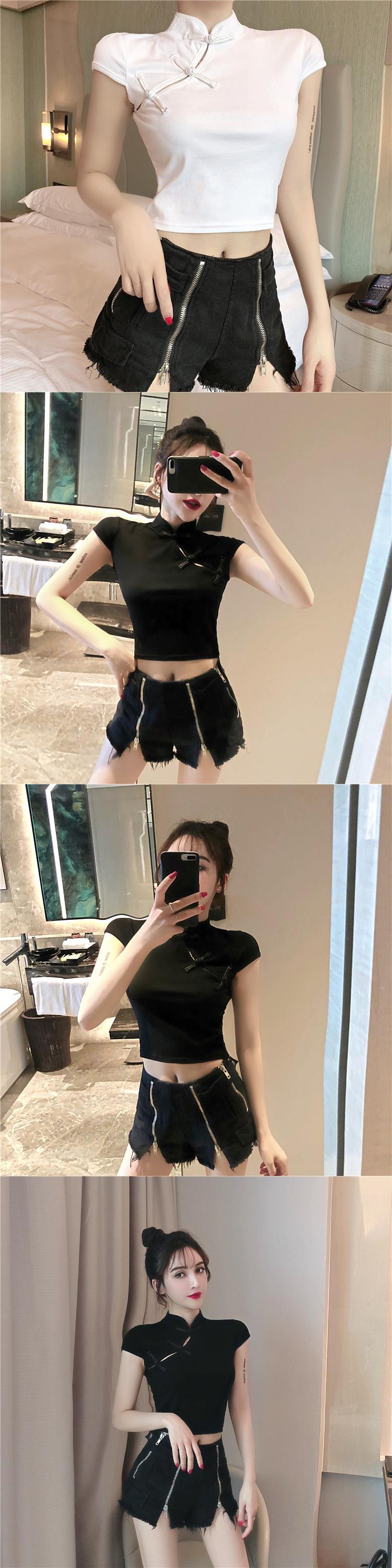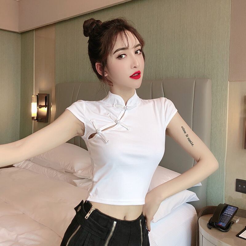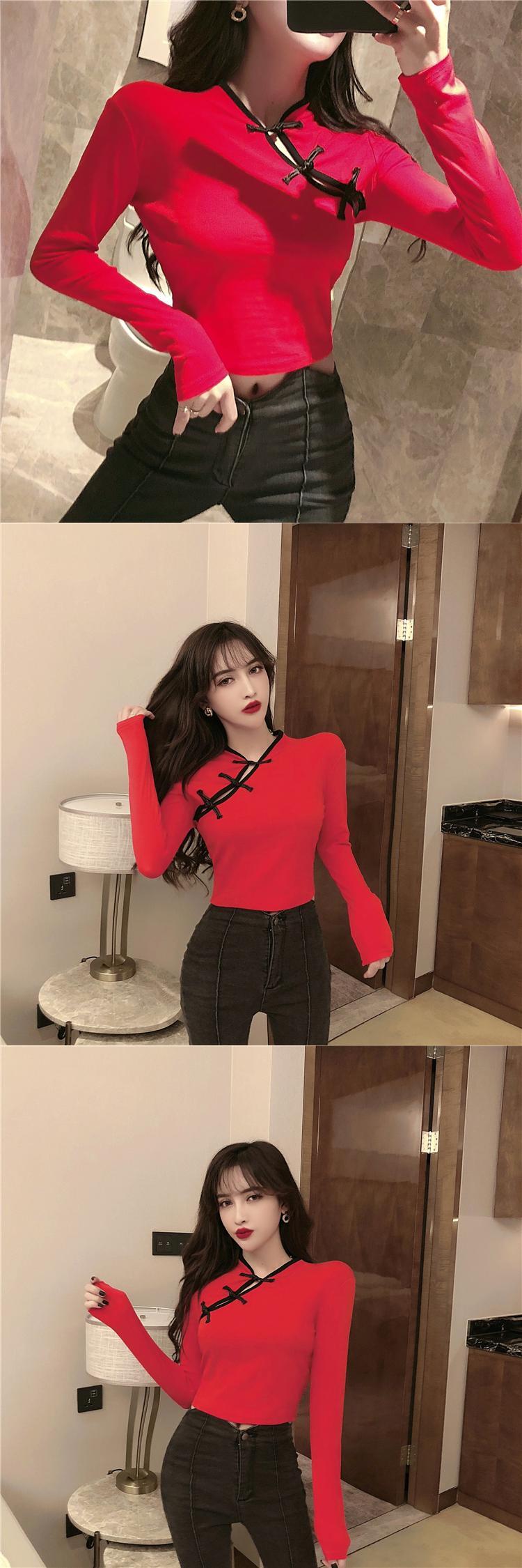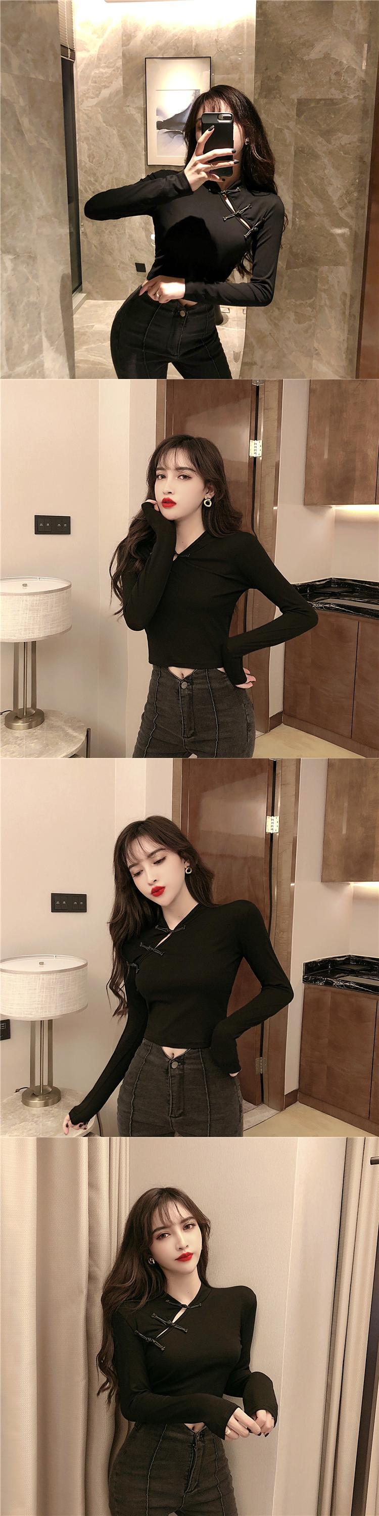 2021年秋の新しい女性の中国風気質レトロディスクバックルチャイナドレスセクシーな長袖ショートTシャツトップ micat69731516034