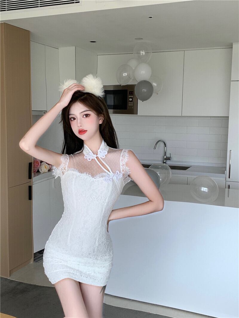 ライブ服女性アンカー服夜セクシーネット糸レースバッグヒップショートチャイナドレス改良版ドレス micat70606451111