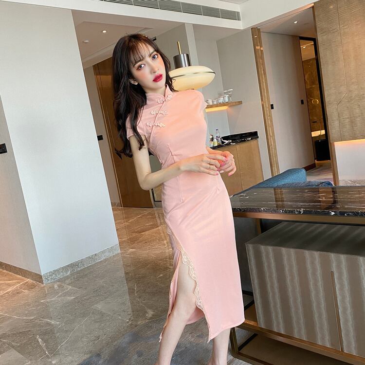 レトロな小さなドレス、共和党スタイル、若いスタイル、気質が改善されたチャイナドレス、夏のセクシーなスプリットミドルドレス micat31974150168