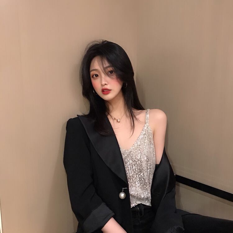 バージャンパー服女性の潮のきらめくスパンコールbuingbuling操作不能なベストキャミソールトップ micat58171949012