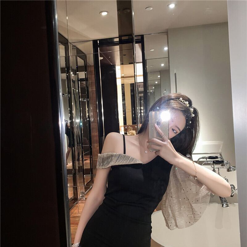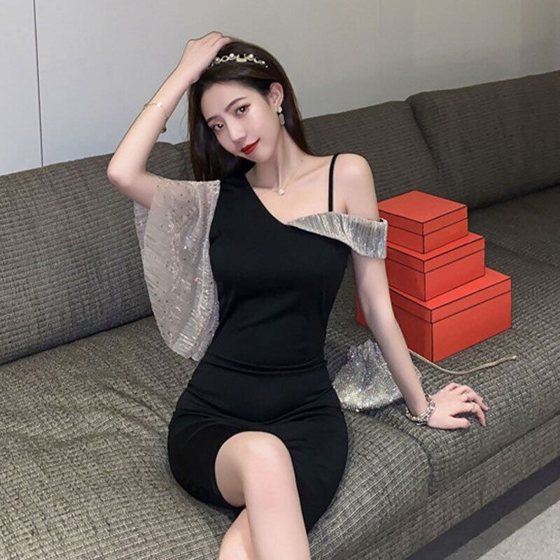 イブニングドレス、ナイトクラブ、女性の夜、短い宴会の気質、セクシーな傾斜した襟、ワンショルダーのストラップレスドレス micat49314807857