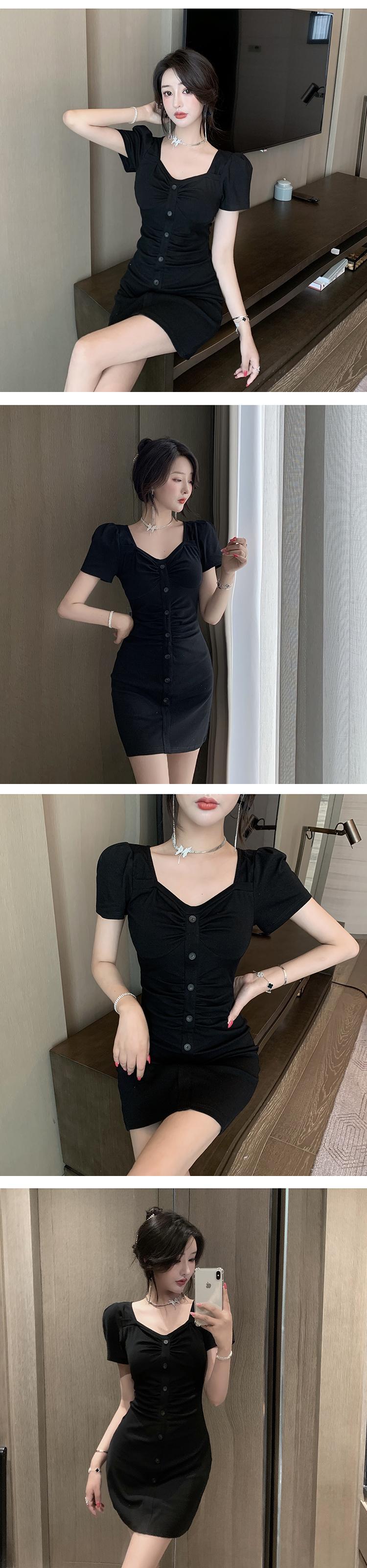 2021年夏新しい女性有名人気質バブルスリーブセクシースクエアネックスリムスリミングショートヒップドレス micat54859600093