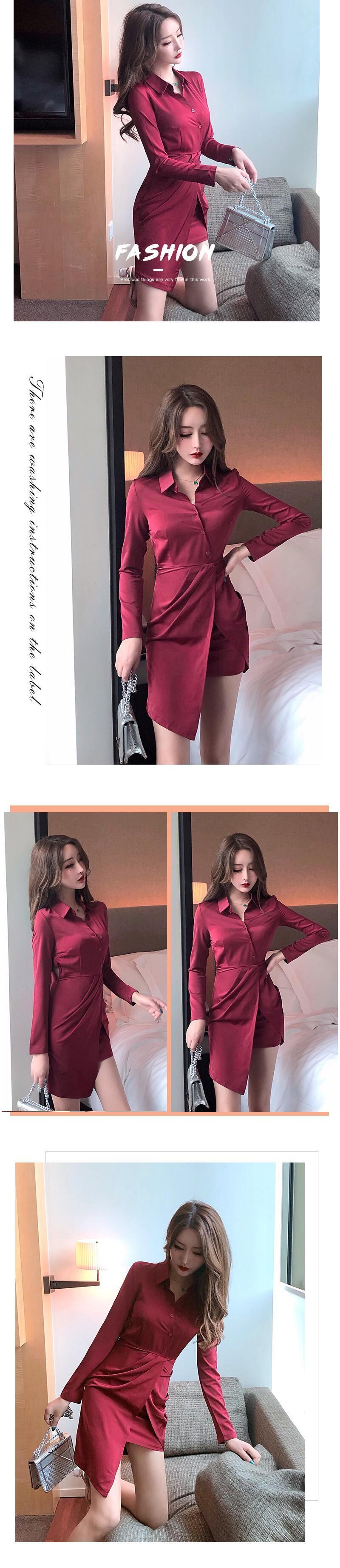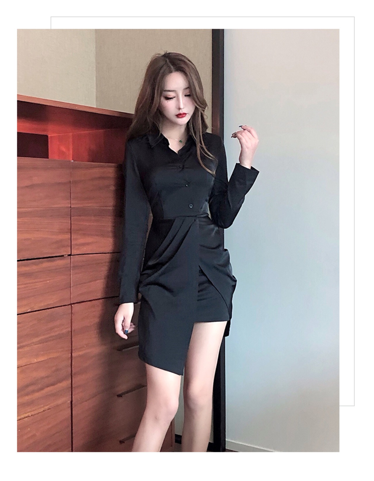 2021年秋新作女性気質女神ファンウエストスリミング長袖イレギュラーバッグヒップシャツカラーワンピース micat4818782108