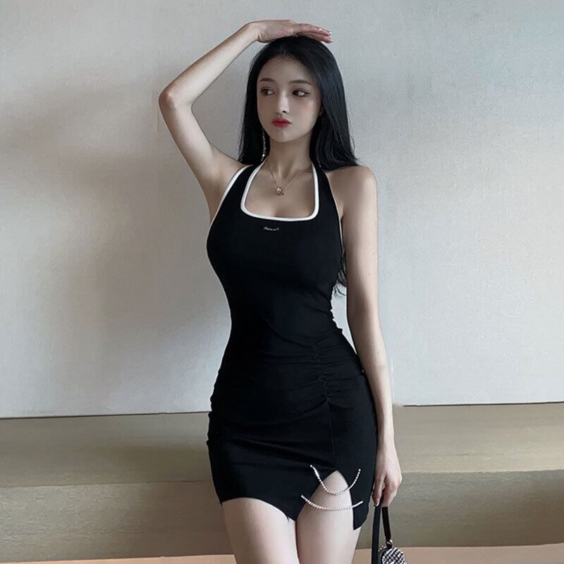 ナイトクラブレディースワークウェアナイトジャンピングディセクシースクエアカラーホルタータイトフィットパッケージヒップスプリットホルターネックドレス micat86451130549