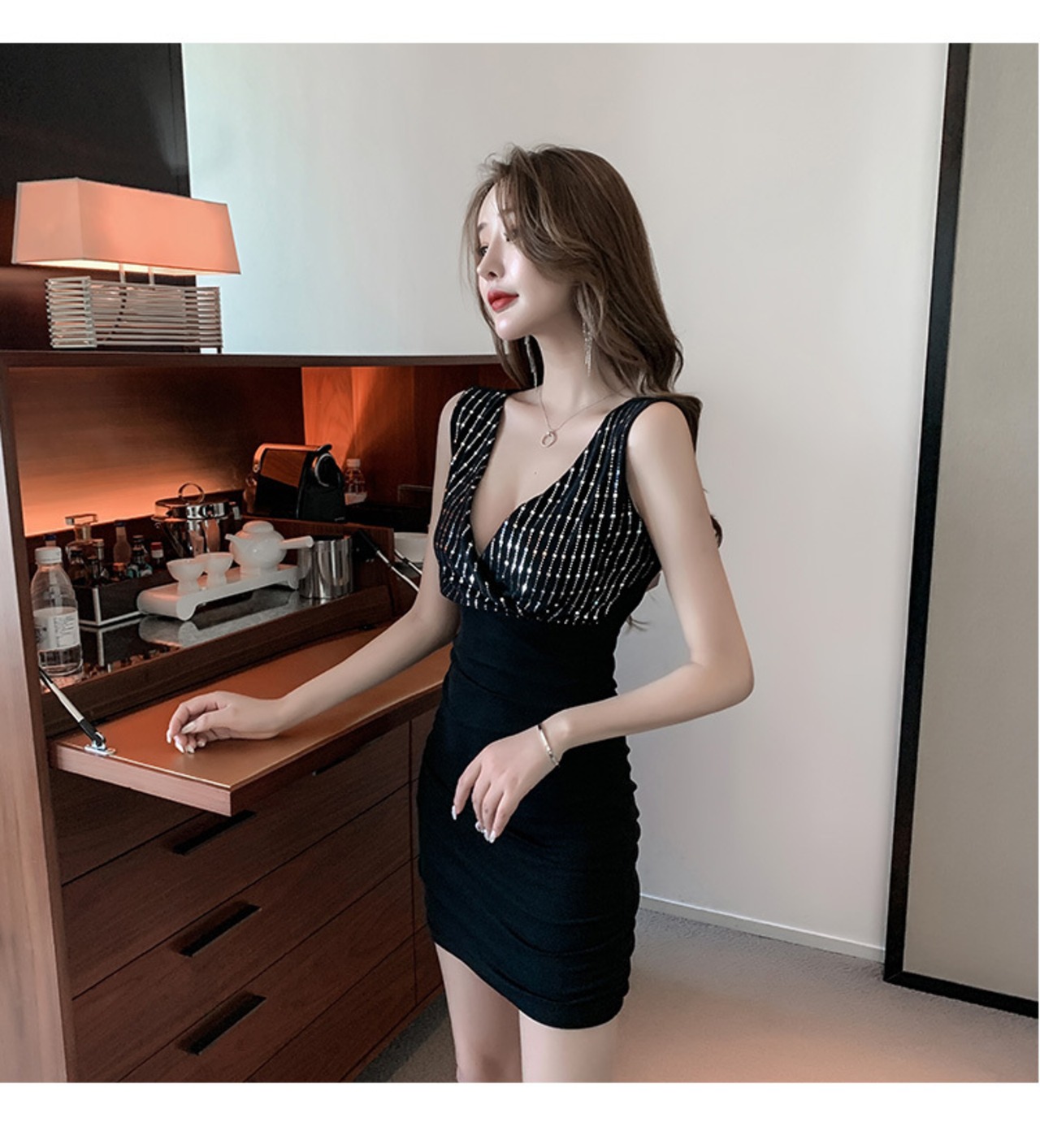 ナイトショー女性のオーバーオール光沢のあるスパンコールセクシーなローカットディープVネックタイトフィットショートノースリーブドレスヒップ付き micat42352323679