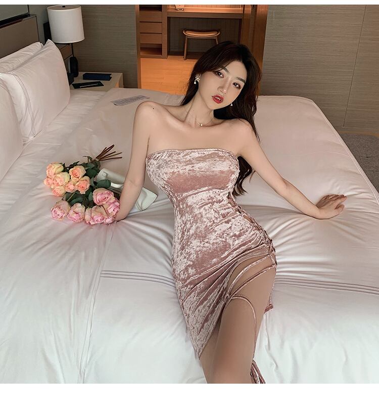ナイトクラブの女性の夜の作業服セクシーなワンショルダーショートバッグヒップスプリットゴールドベルベットチューブトップドレス micat91823895326