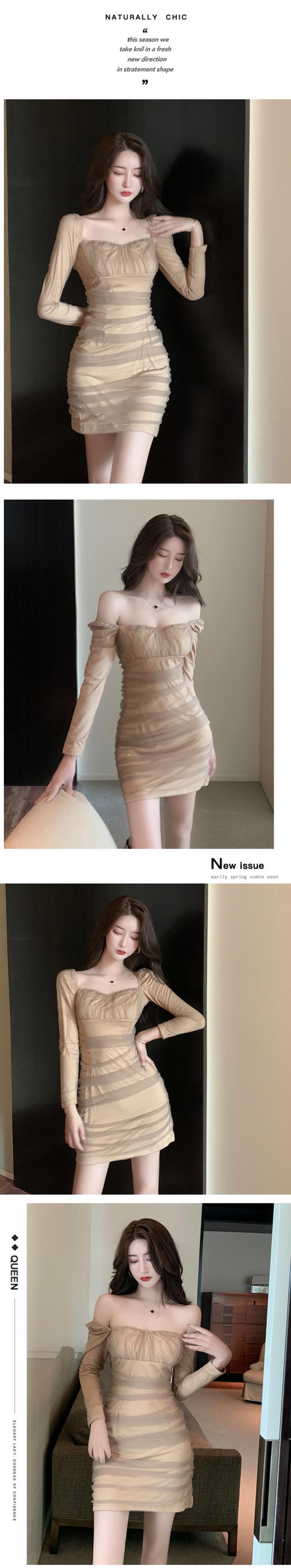 ナイトクラブの女性の夜の作業服は気質セクシーなスリムフィットヒップレングスメッシュガーゼ長袖チューブトップドレス micat71496235911