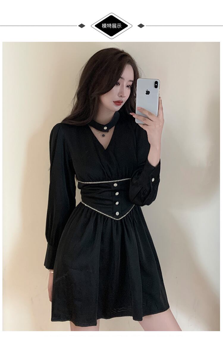成熟したロイヤルシスタースタイルの女性の秋フランスの高級セレブレディース西洋気質ラインストーンウエストと薄いふくらんでいるドレス micat58528621232