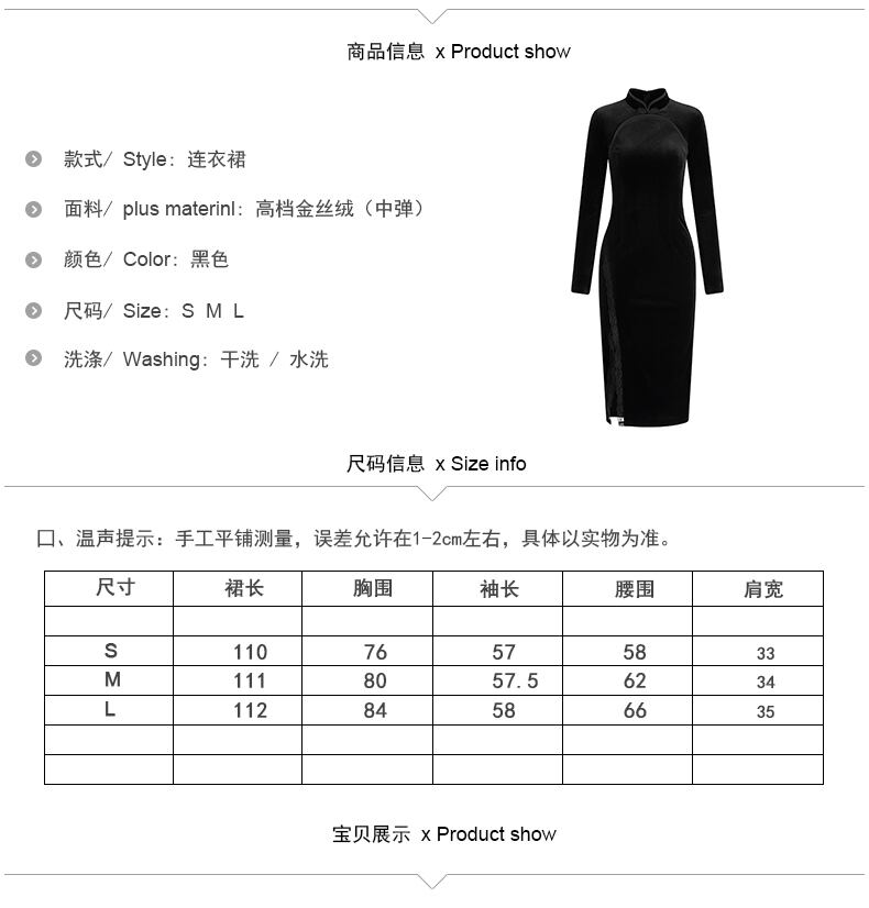 2021年秋新しい女性の若いモデルデイリーゴールドベルベットブラック長袖ミドル丈改良チャイナドレス micat41692530102