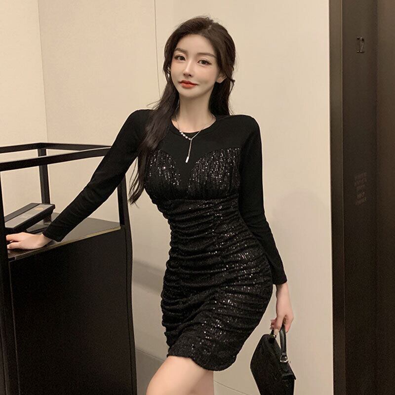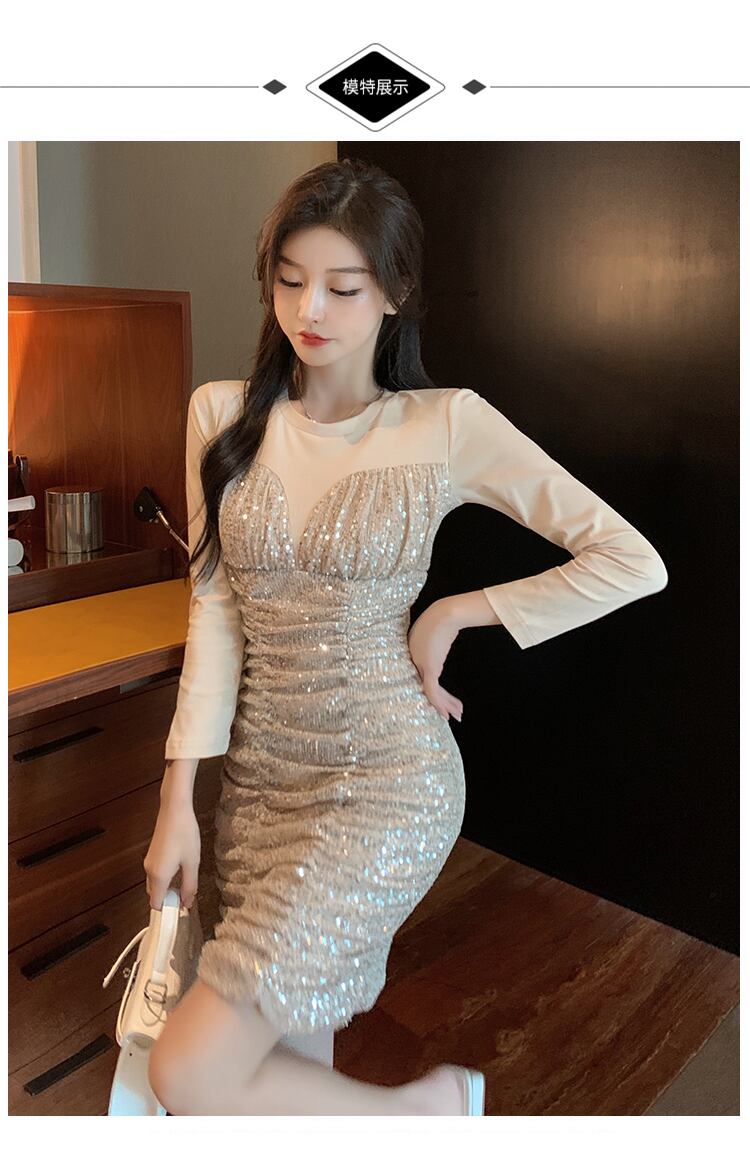 秋の婦人服2021年新しいナイトバージャンパーキラキラスパンコールメッシュステッチセクシーヒップドレス micat27472025541