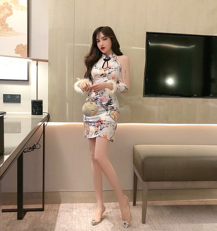ネットセレブアンカーコスチューム女性のポジェニック秋若いチャイナスタイルセクシーなストラップレス長袖改良チャイナドレス micat25661976105
