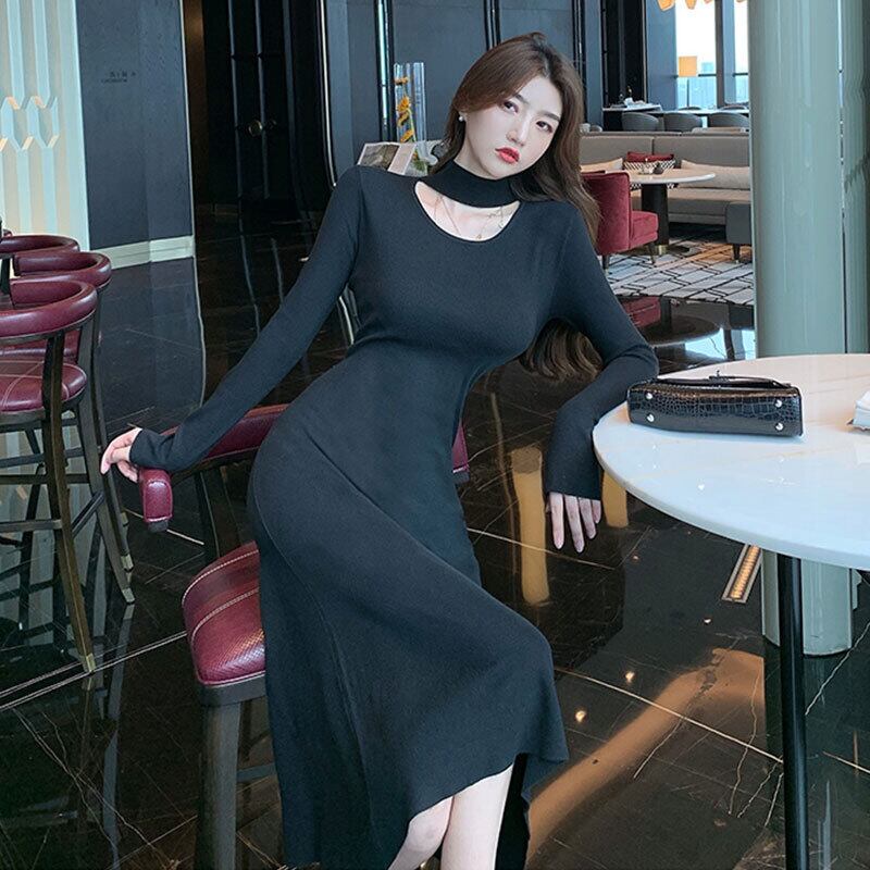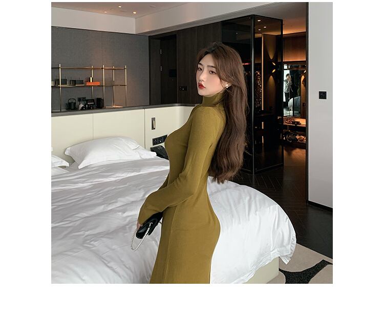 秋の婦人服2021年新作熟女風気質女神ファンハーフハイネックミドル丈ニットワンピース micat49553793798