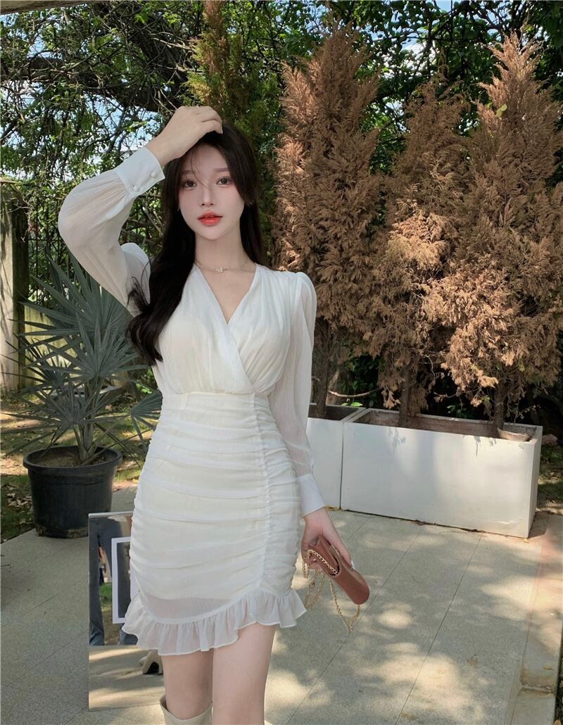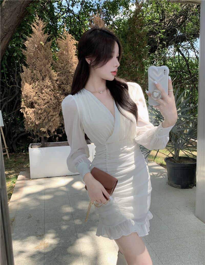 フランスの小さな白いスカート秋の婦人服2021新しいスーパーフェアリーミルク甘い純粋な欲望セクシーなスリムバッグヒップドレス micat62597129374