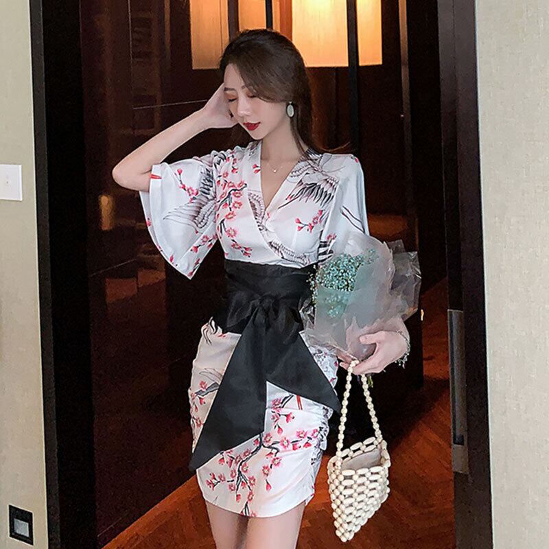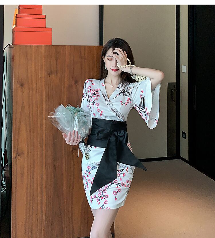 夜の作業服、作業服、アンカー服、女性の気質、セクシーなVネックウエスト、薄い着物ドレス micat16264999483