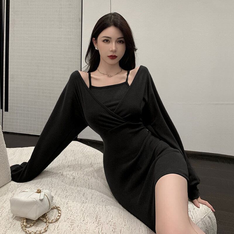 秋の婦人服2021新しいセクシーなストラップレスウエストスリムスリミングバッグヒップフェイクツーピースドレス micat890974089