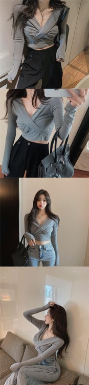 ニッチなシックなトップス2021年の新しい女性の初秋のセクシーな折り目クロスVネックショートニットボトミングシャツ micat91372401639