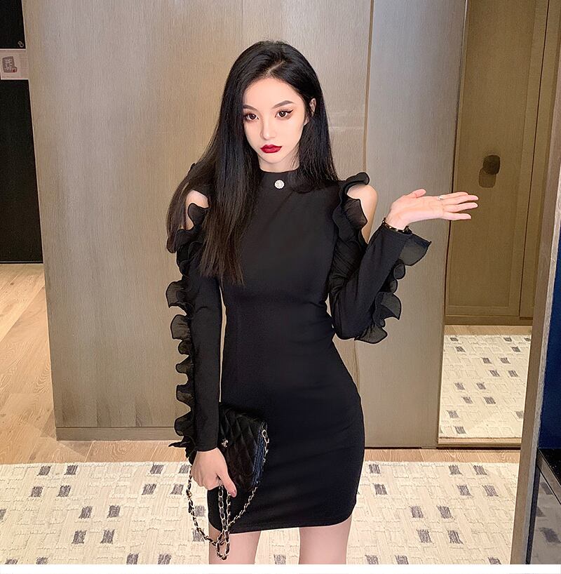 フレンチヘップバーンスタイルのリトルブラックドレス秋の女性のハイレベルなセレブ感eign気質セクシーバッグヒップストラップレスドレス micat76904998972