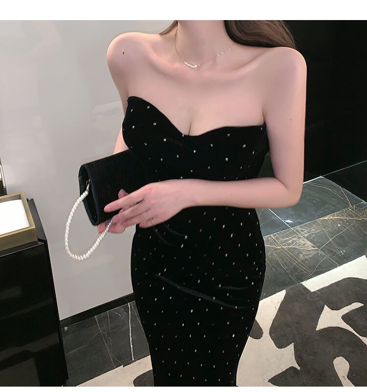 黒のイブニングドレスロングスカートナイトクラブ女性の夜の宴会気質スパークリングダイヤモンドセクシーなチューブトップドレス micat62062060076