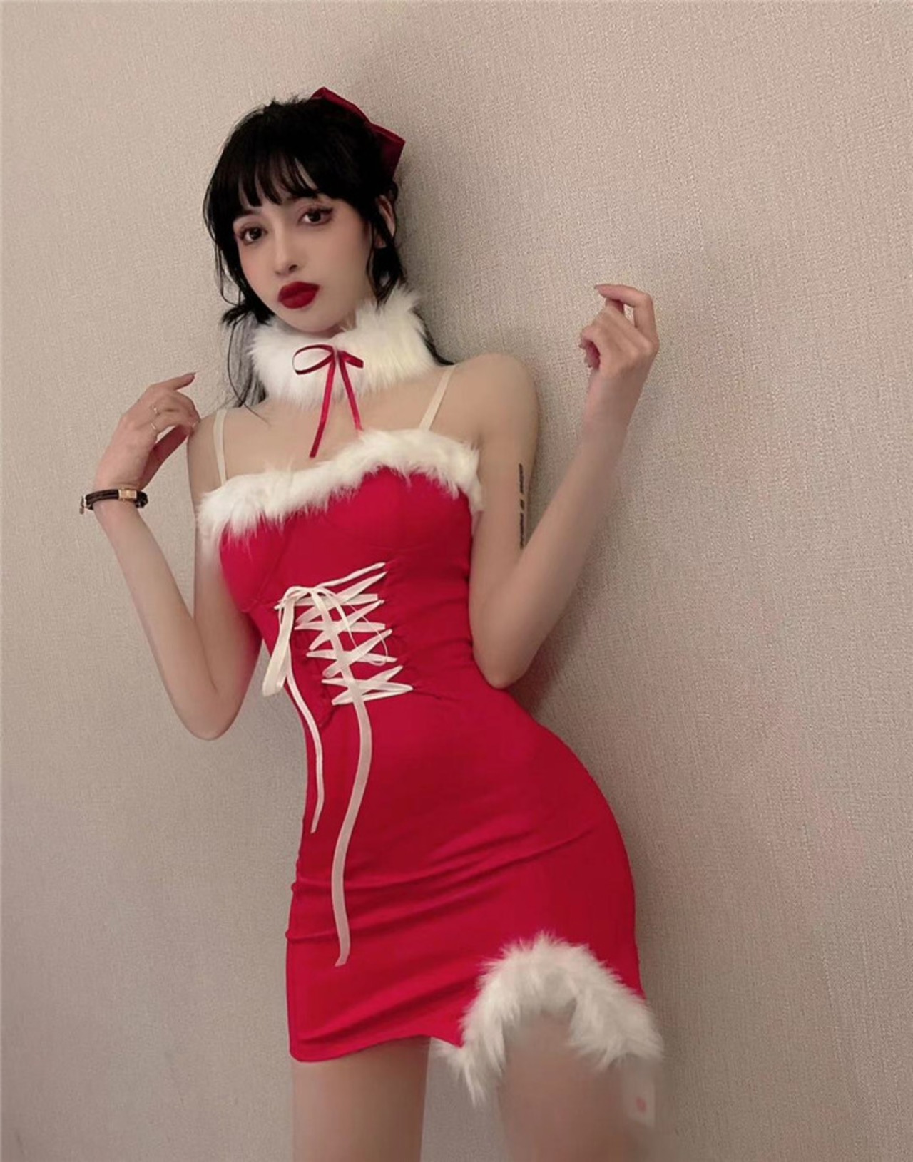 クリスマステーマスカートお正月服レッドネットレッドアンカーコスチューム女性気質セクシーチューブトップストラップドレス micat46698397888
