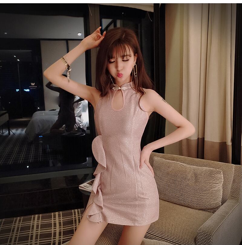 チャイナドレス修正ドレスドレス女性シンプルで寛大な気質セクシーなホルターバッグヒップショート共和国小さなドレス micat84541836628