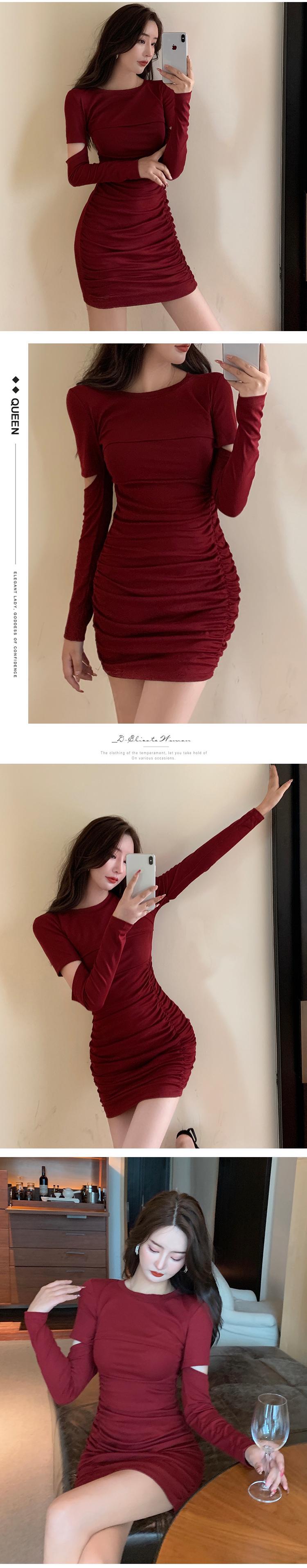 秋の婦人服2021年新作センスニッチセクシースリムスリミングフォールドバッグヒップボトミングドレス micat65167902957