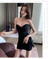 ナイトクラブドレスレディースナイトワーク服セクシーローカットディープVネックショートスリムフィットヒップチューブトップスカート micat2372562925