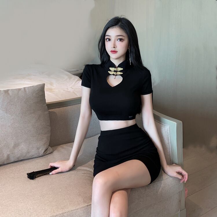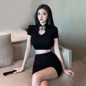 改良されたチャイナドレス夏の夜のフィールド若いセクシーな短いへそトップ+短いスカートのツーピーススーツ micat45248190919