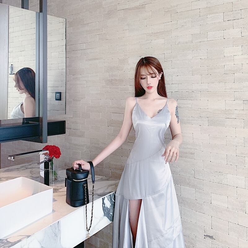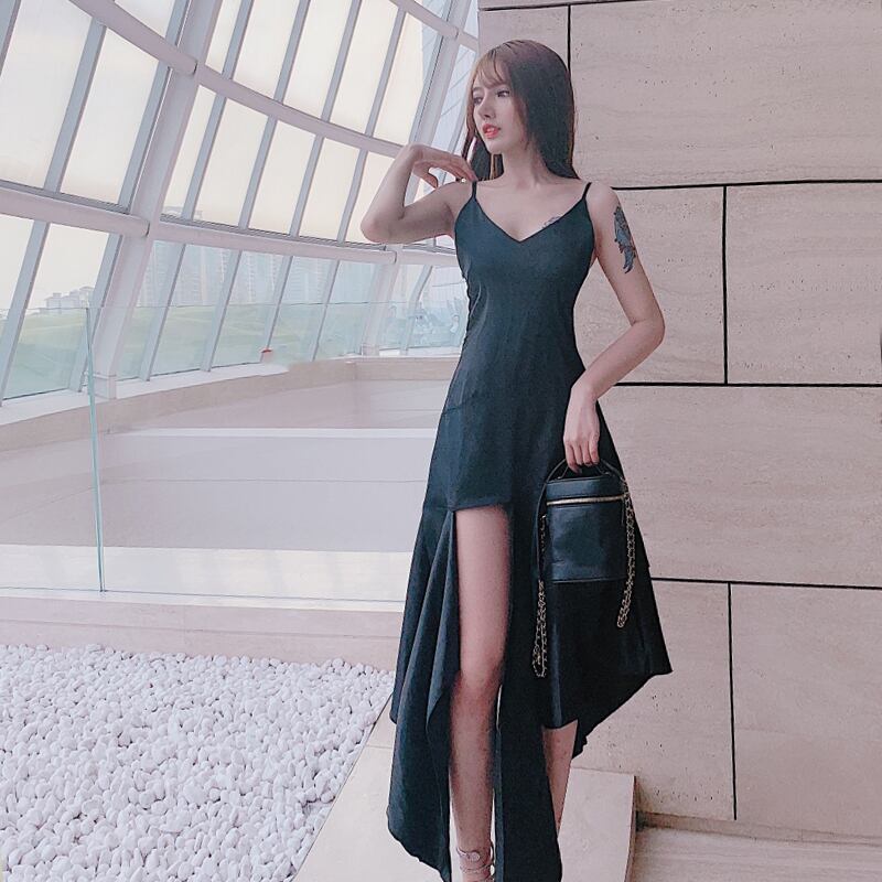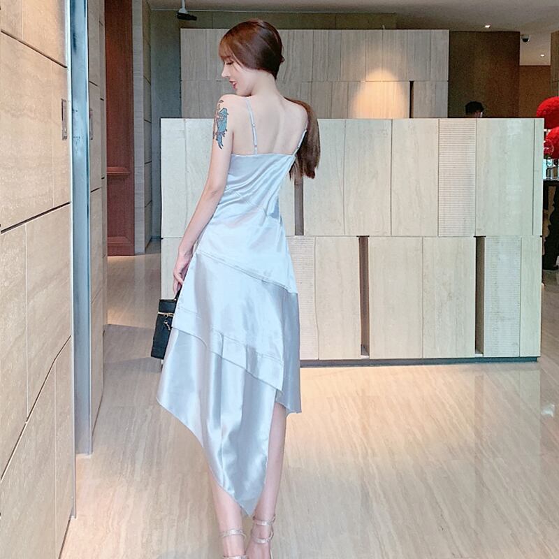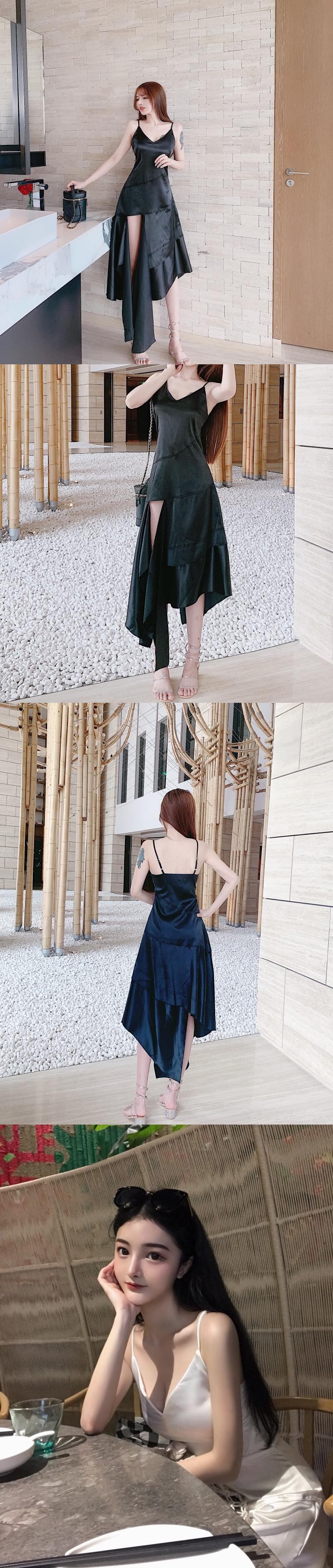 ドレス2021の新しい宴会の気質は薄いロングスカートセクシーなVネックの不規則な裾の長いサスペンダードレスです micat24307474665