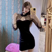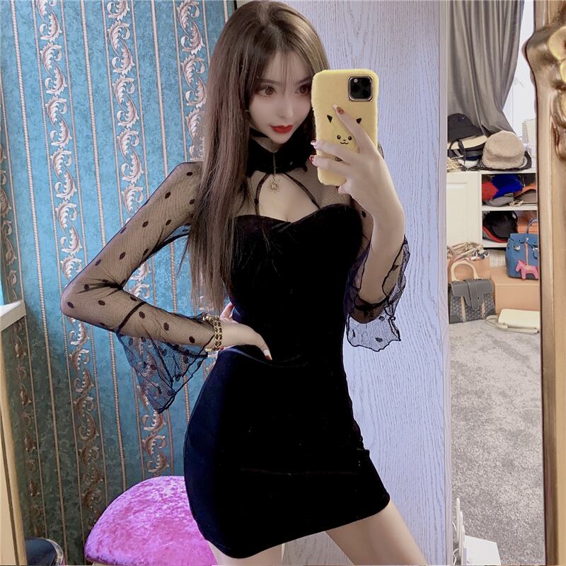 ネットセレブアンカーコスチューム女性ポジェニック女性気質セクシーローカットメッシュステッチゴールドベルベットバッグヒップドレス micat68557279189