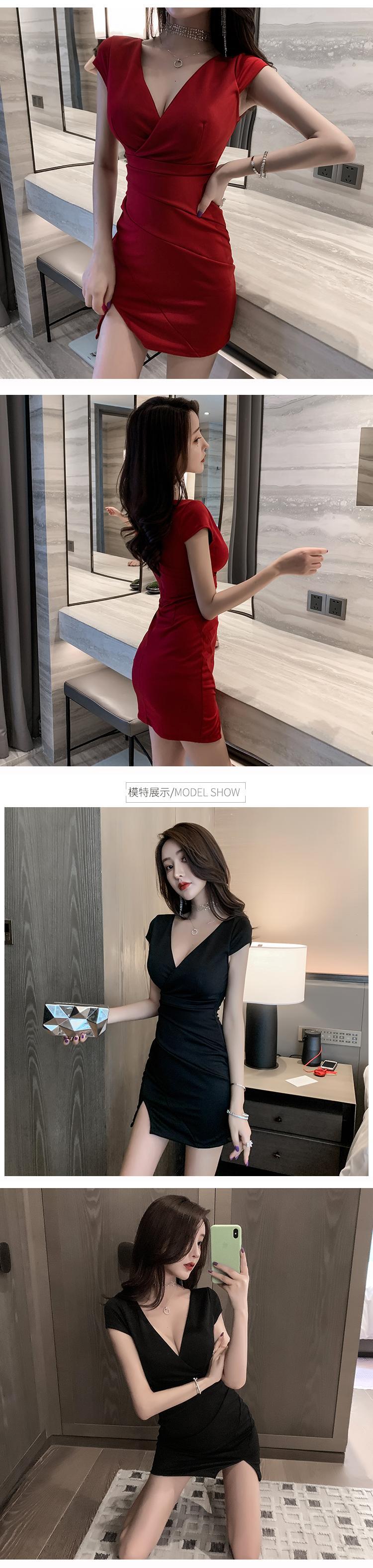 ディープVドレスナイトワーク服ショップオーバーオールセクシーなローカットスリムスリミングショートスカートヒップスリット付き micat72440093118