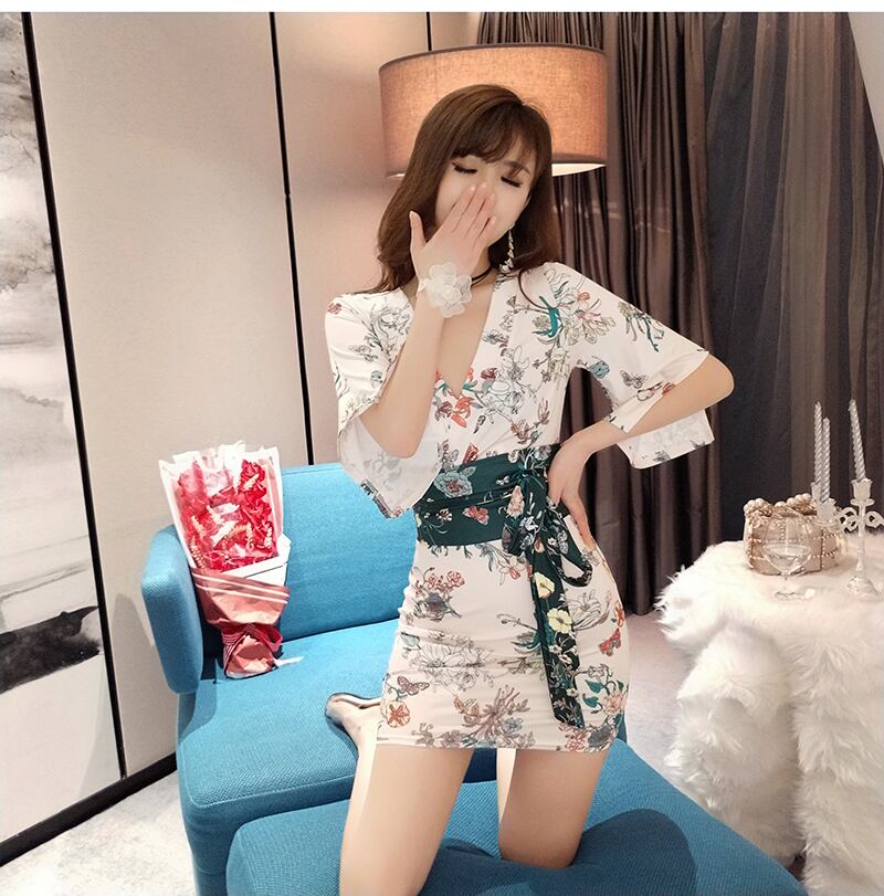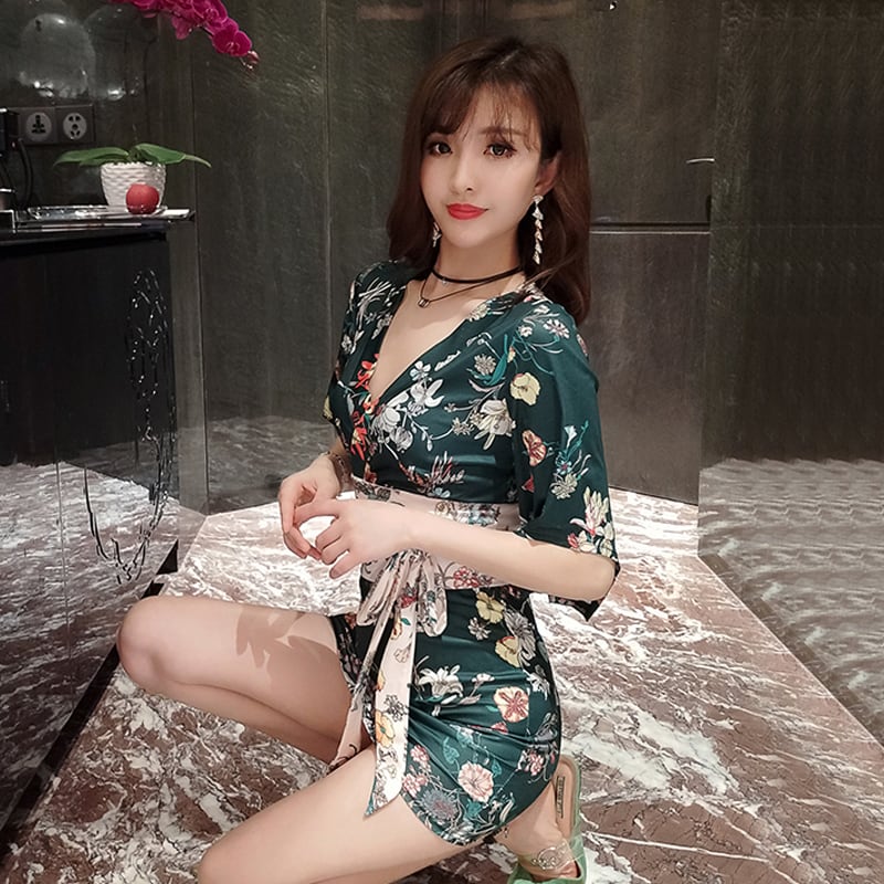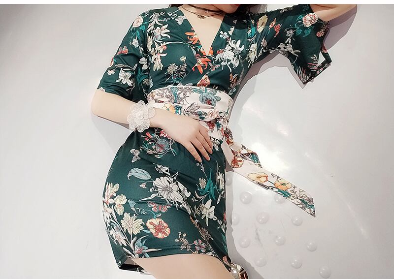 ネットレッドアンカー服スカートレトロカラーセクシークロスVネックウエスト薄フレアスリーブ着物ワンピース micat76329456361