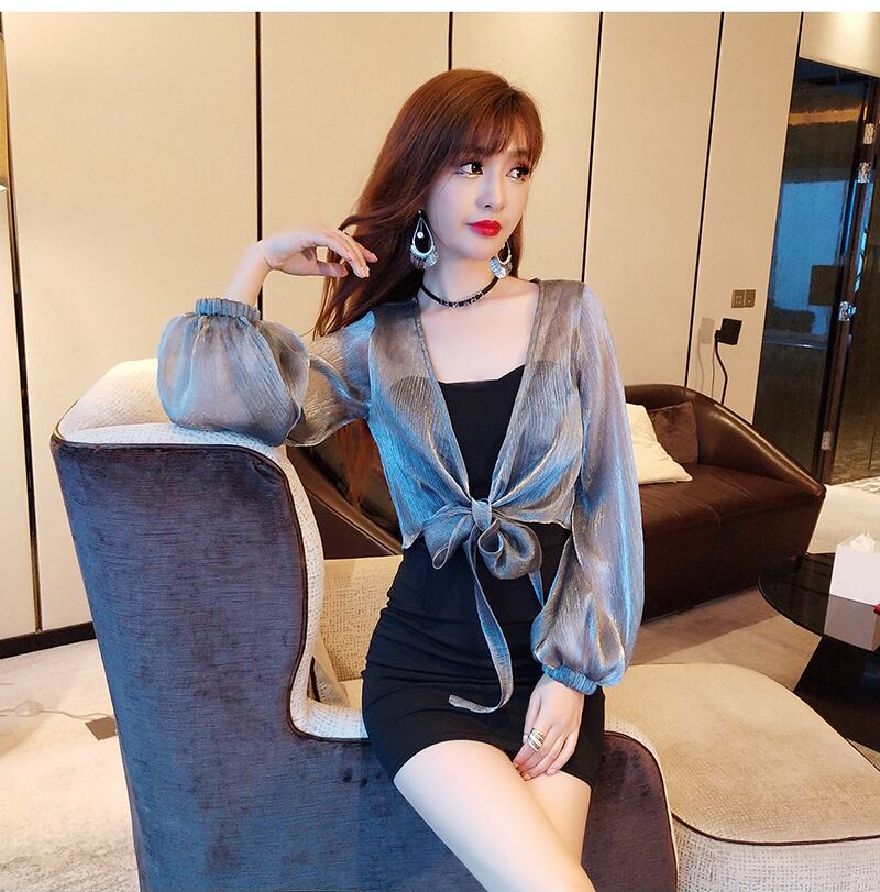 女神ファンスーツファッション光沢のある明るいシルクカーディガンスモールジャケット、セクシーなチューブトップストラップドレスツーピーススカート micat16674161172