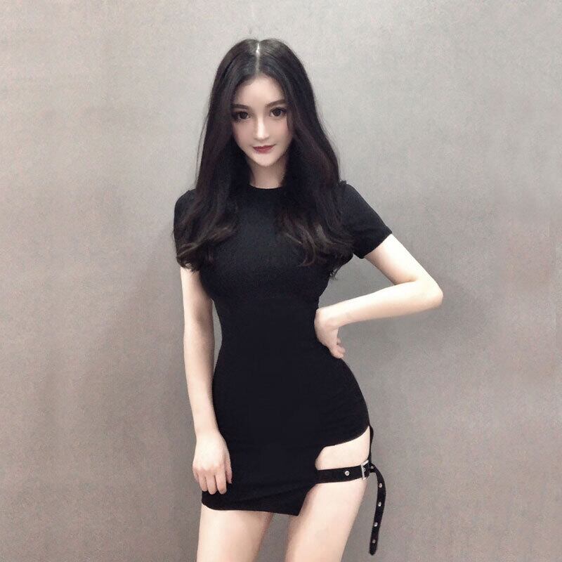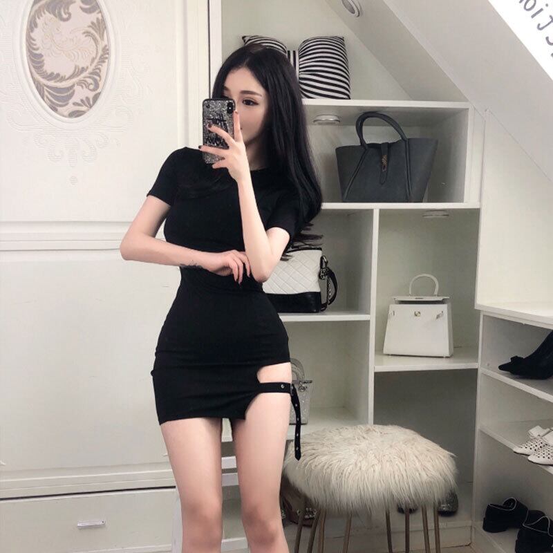 ナイトクラブレディースバージャンプディセクシーリトルブラックドレス慎重に編集された半袖バッグヒップネクタイサイドオープンドレス micat52177440475