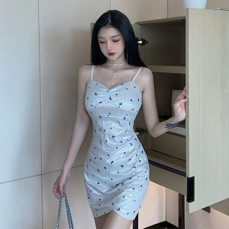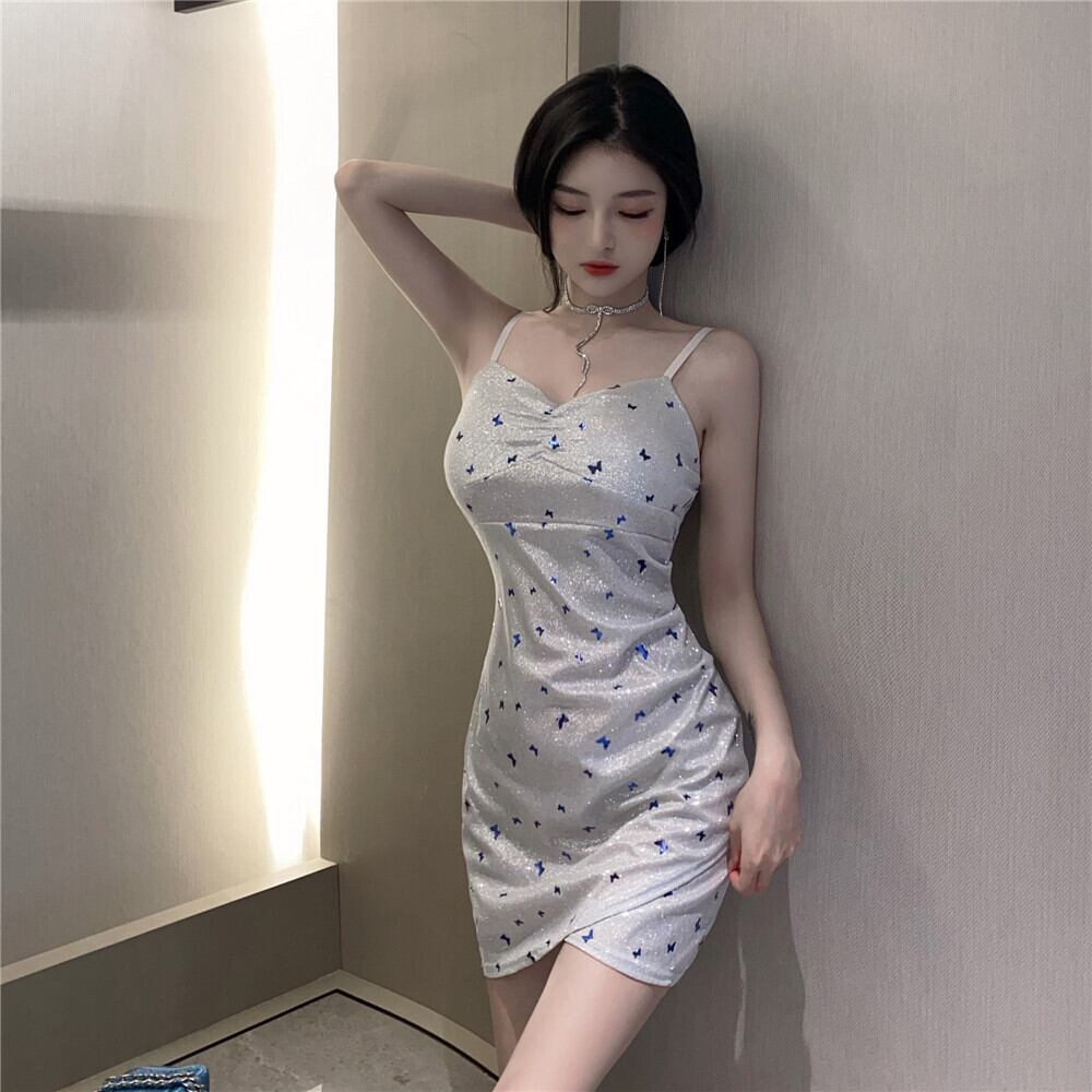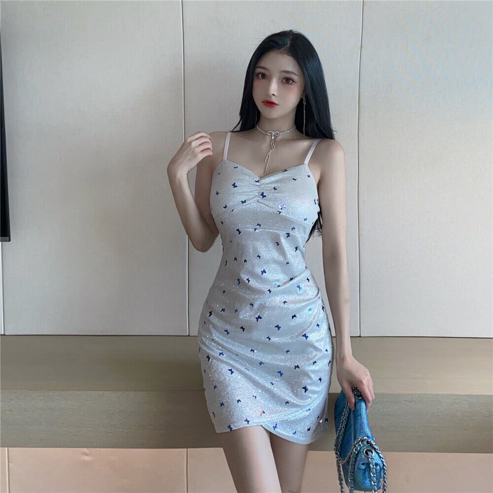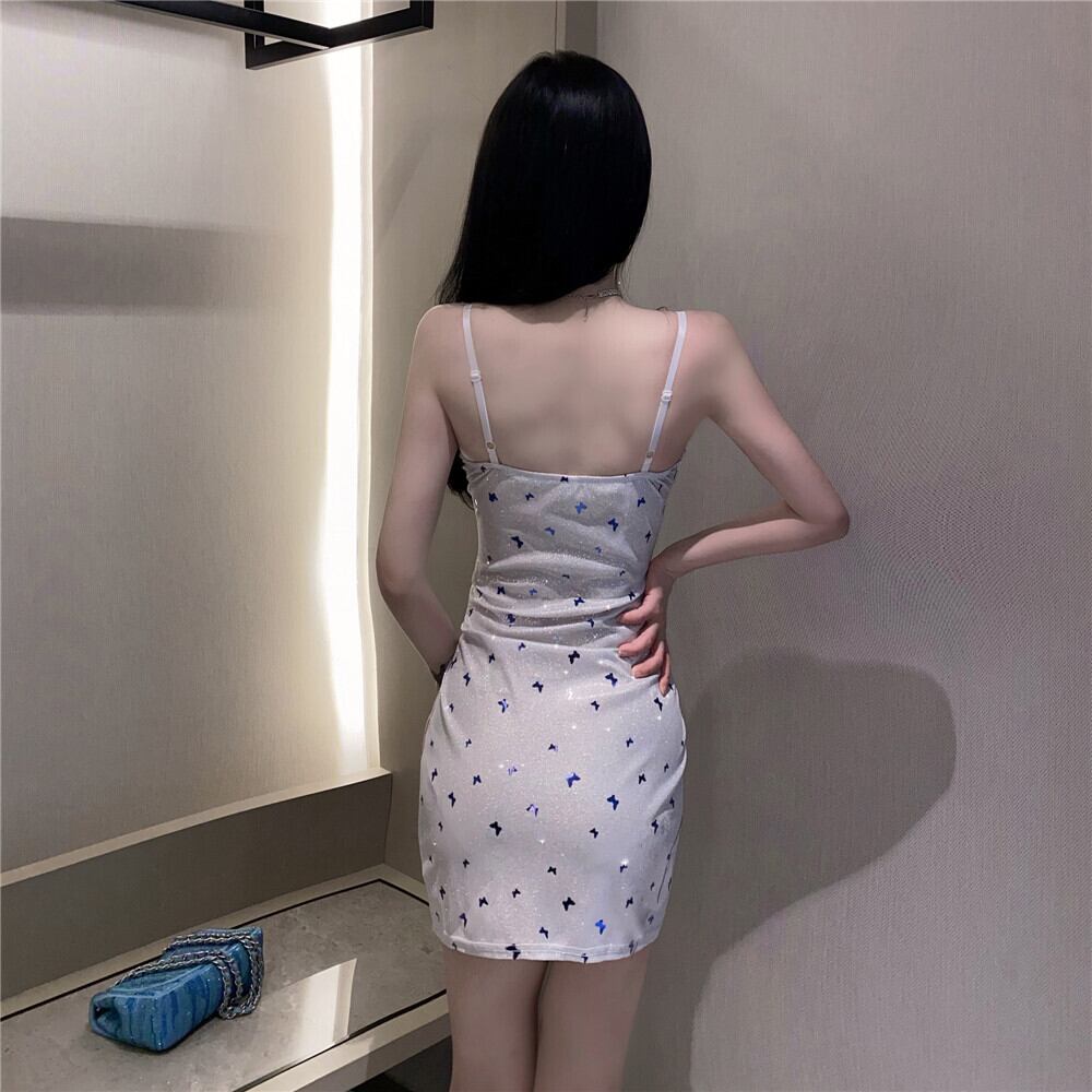 ナイトクラブレディースイブニングドレスショートスパークリングシャイニーシルクセクシーVネックイレギュラーバッグヒップサスペンダードレス micat43744300464