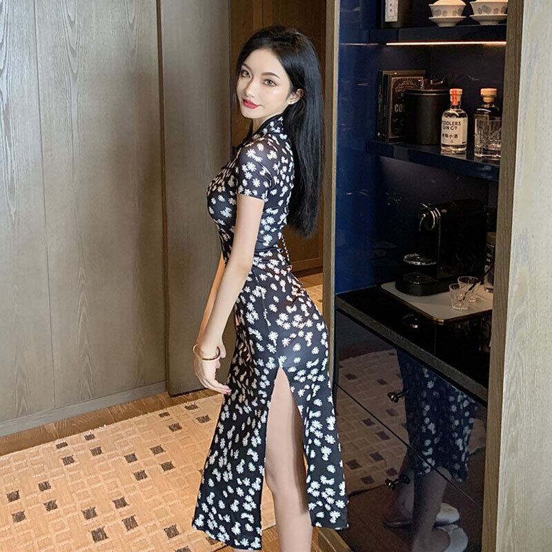 ネット赤いアンカー服女性の若いレトロな小さなデイジーフローラル半袖チャイナドレス改良版ドレス micat20782954541