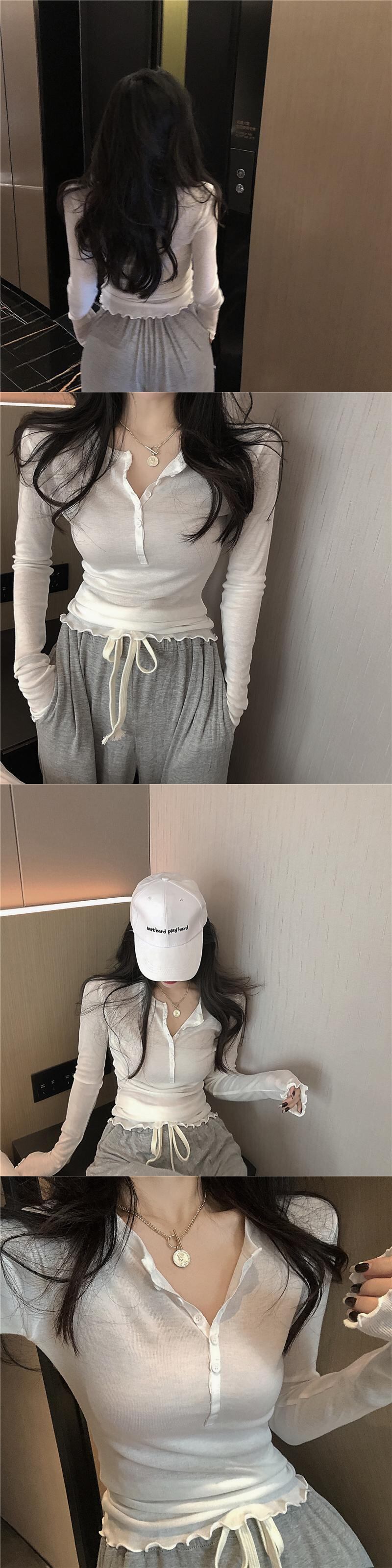 予備の2021年の新しい女性の薄い服香港スタイルのファッションレトロなシングルブレストの波状の裾のトップTシャツ micat42099657382