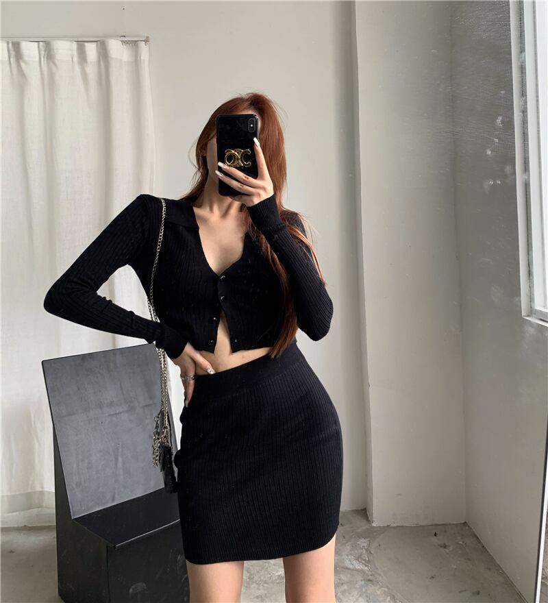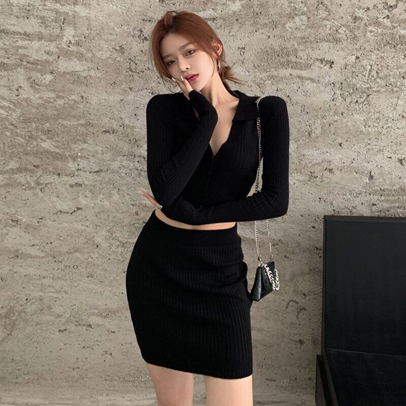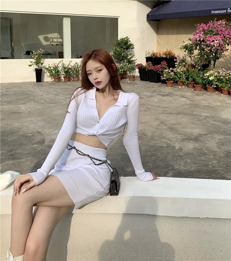 初秋のファッションスーツレディース薄手ニットウエスタンスタイルセクシーショートトップ+ハイウエストハーフスカートツーピーススーツ micat84073181191