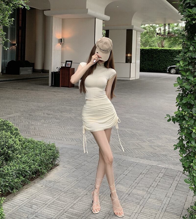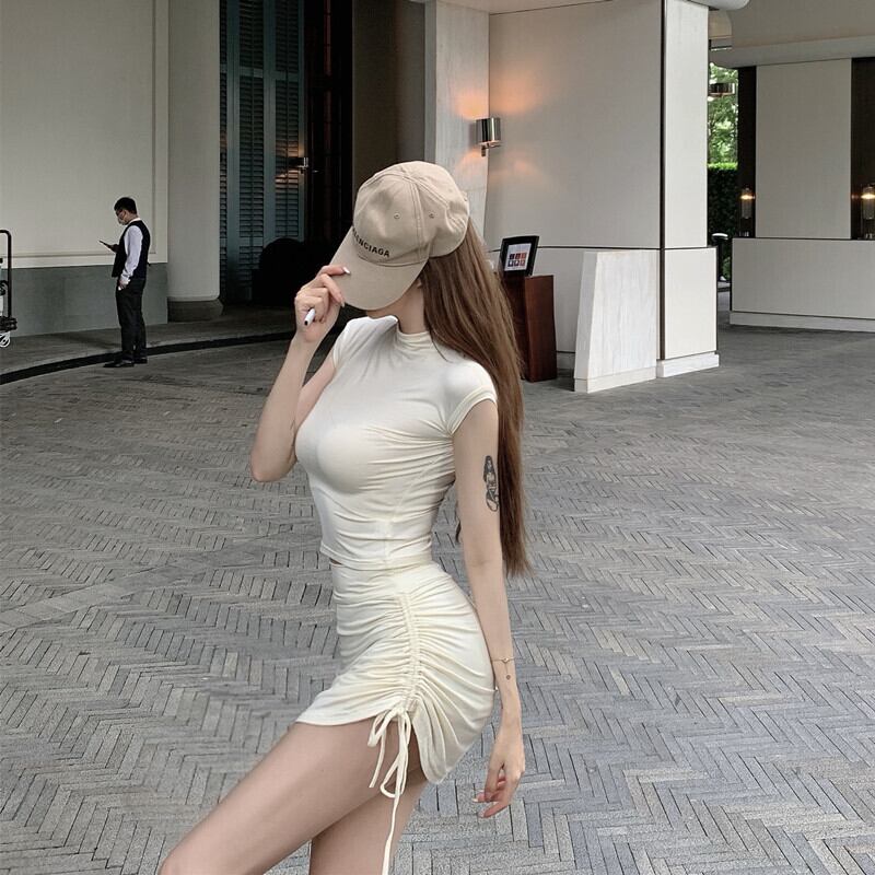 塩揚げストリートスーツ夏の純粋な欲望セクシーなハーフハイカラートップTシャツバッグヒップショートスカートツーピーススーツ micat2260001644