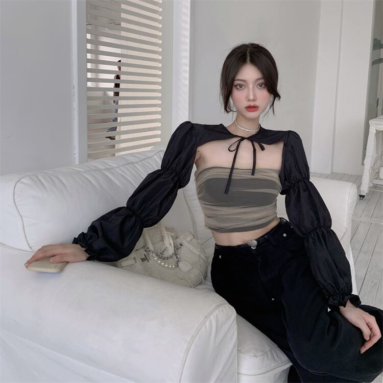 ネットセレブアンカー服女性生放送服フランスの純粋な欲望風長袖ショールセクシーチューブトップツーピーススーツ micat72514996412